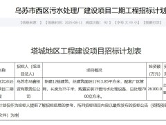 8月11日,新疆維吾爾自治區烏蘇市西區污水處理廠建設項目二期工程招標計劃發布。該項目新建12棟建筑,總建筑面積11913.85平方米,配套廠區管網,長度為35千米,購置安裝15套污水處理設備,日處理7000立方米。項目...